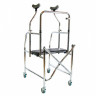 Каркас ходунков состоит из правой и левой рамы, соединенных между собой механизмом складывания ножничного типа. Каждая рама состоит из узла крепления, к которому жестко на болтах крепится стойка под установку рукояти и шарнирно – стойка крепления переднего и заднего колес
