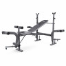 Максимальная нагрузка на стойки для штанги равна 100 кг, а расстояние между стойками 76 см. Скамья также оснащена ручным рычагом с максимальной нагрузкой до 40 кг и нагрузкой на рычаг для валиков до 80 кг. Весовые пластины не входят в комплект, но их можно приобрести отдельно.